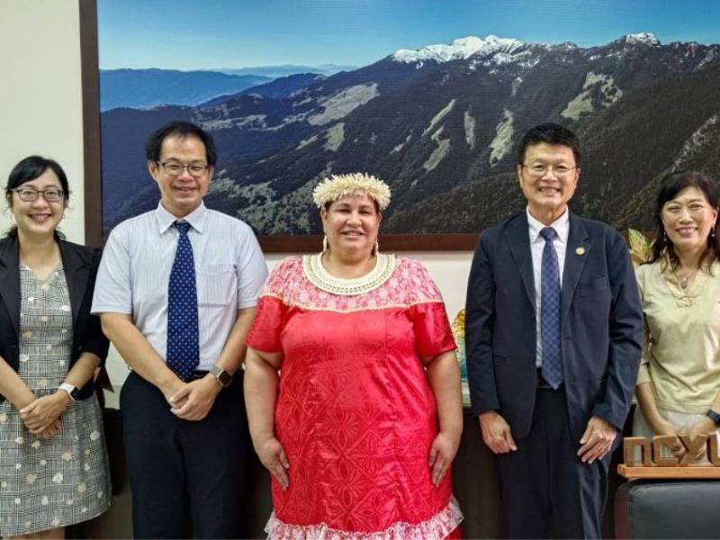 圖5:國際事務處楊正誠國際長(右2)介紹本校與馬紹爾的各項國際交流合作。