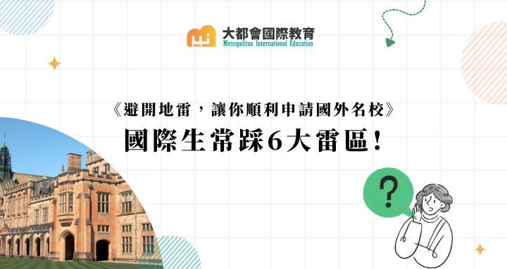 要如何提高名校申請成功率?MIE大都會國際教育藉由深入分析國際學生最常犯的6大申請錯誤,提供專業建議,讓你成功申請名校不採雷。