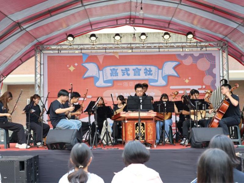 圖1:114學年度「嘉式會社」社團博覽會17日、18日分別在蘭潭校區及民雄校區盛大登場,蘭潭開場由國樂團帶來精彩演出。