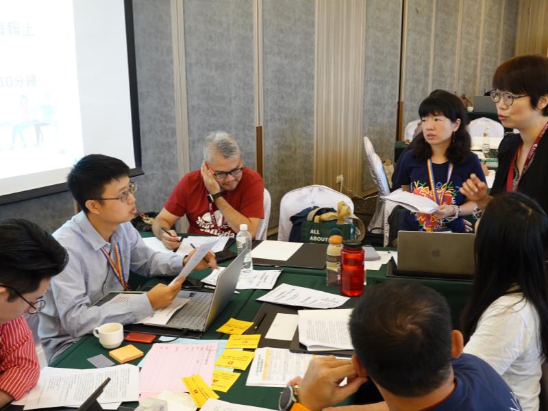 ▲官淑蕙助理教授於研習現場引導教師小組進行參與式教案設計
