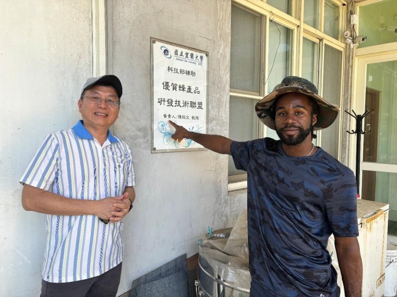 聖克里斯多福及尼維斯農業局(Department of Agriculture, St. Kitts)官員Mr. Monroe Tweed近日專程造訪國立宜蘭大學五結試驗蜂場與野蜂復育基地,由生物技術與動物科學系陳裕文終身特聘教授親自接待,雙方針對蜜蜂復育、生態保育與蜂病防治等議題進行交流,展現台灣在農業科技與生物多樣性保育上的科研實力與國際合作潛力。
