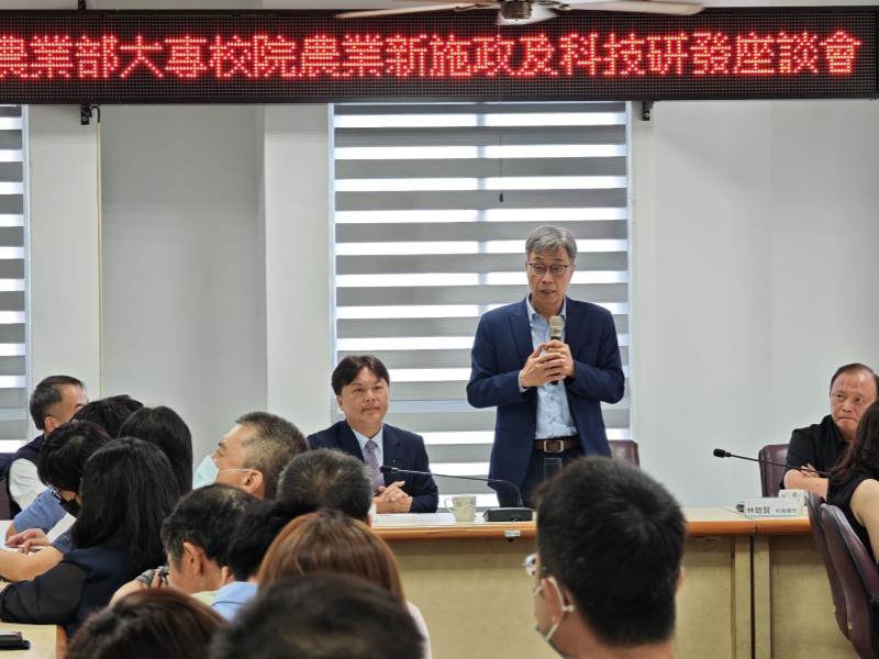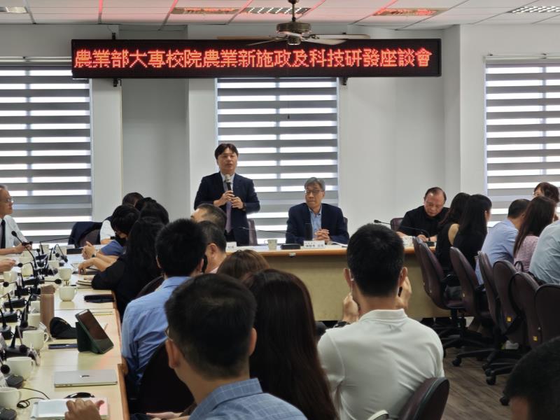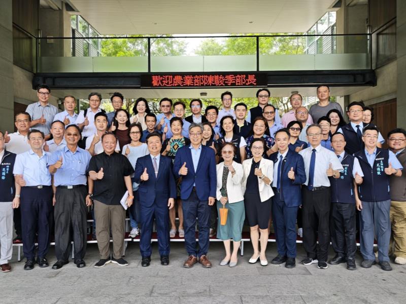 農業部推動「大專校院農業新施政與科技研發」於8月19日在國立宜蘭大學舉行座談,農業部部長陳駿季率領各司署同仁親臨與師生交流。會議聚焦於「智慧、韌性、永續、安心」四大施政主軸,並展示農業部近年成果與宜蘭大學的科研亮點,期望透過學研鏈結,讓宜蘭大學成為東台灣農業創新的示範基地。