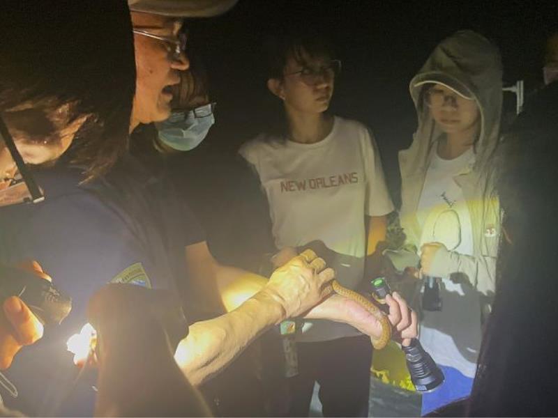 圖7:夜間觀察巧遇蛇出沒,許富雄副教授藉機解說遇到蛇之因應。