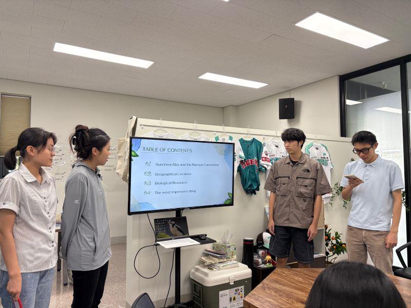 本屆實習自8月5日至9月5日在韓國順天灣RRC-EA總部舉行。學生實習內容包含線上研習濕地與《拉姆薩公約》課程、協助翻譯與整理中國多個濕地城市(如大理、拉薩、福州等)相關資料,並更新濕地城市聯絡人資料庫。此外,更參與國際會議與教育推廣活動,並完成小組專案,發表介紹順天灣濕地的成果。透過一個月的實習歷程,學生不僅提升語言、資料處理與專案能力,更深化對國際濕地治理與文化交流的理解。