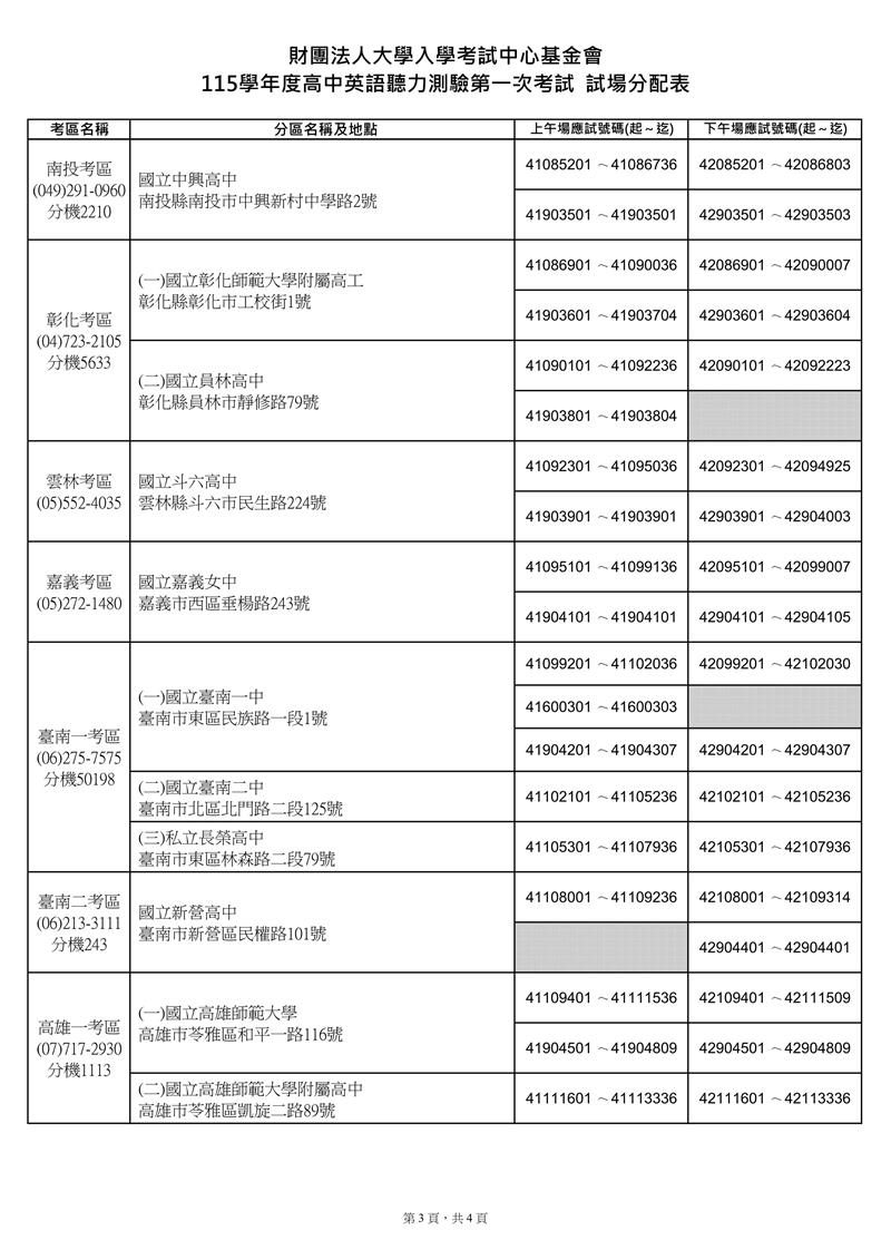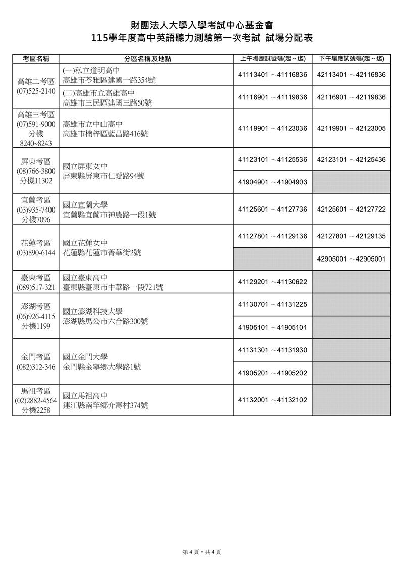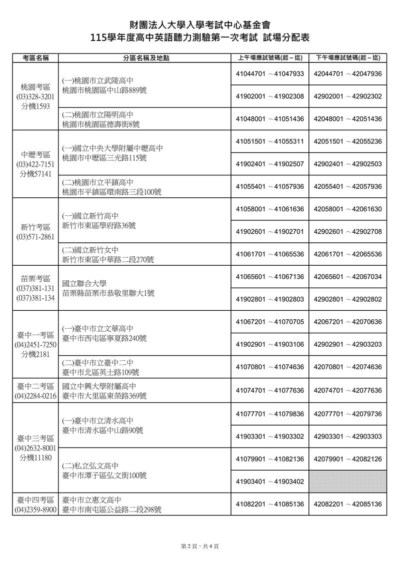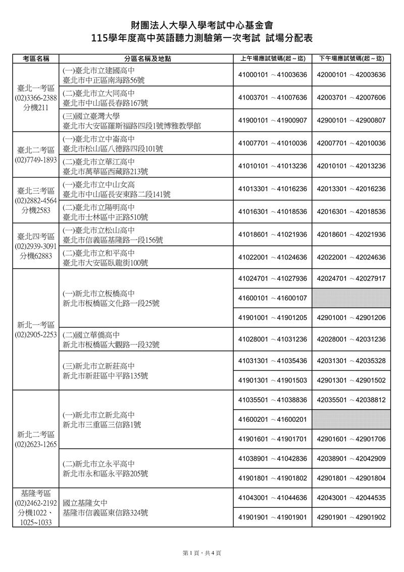 / 情報 / 大學考情 / 【115英聽Ⅰ】10/14公布試場,快確認