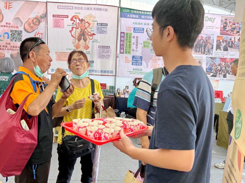 圖2:生命科學院推出茶葉發酵飲品與多款調配茶飲,讓民眾在品嚐過程中體驗創新科技結合茶文化的嶄新風貌。