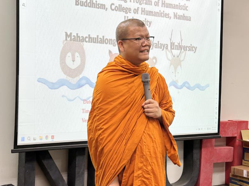 南華大學姊妹校來自泰國的摩訶朱拉隆功大學(Mahachulalongkornrajavidyalaya University, MCU)於10月3日到訪,由阿難比丘(Phra Anan Bhikkhu)教授率領該校佛學碩士班十位學員與南華大學宗教學研究所及人間佛教數位學習碩士在職專班展開跨國學術交流。此次活動旨在促進佛教高等教育的相互學習與合作,深化兩校在人間佛教理念、宗教教育及數位學習領域的交流與實踐。