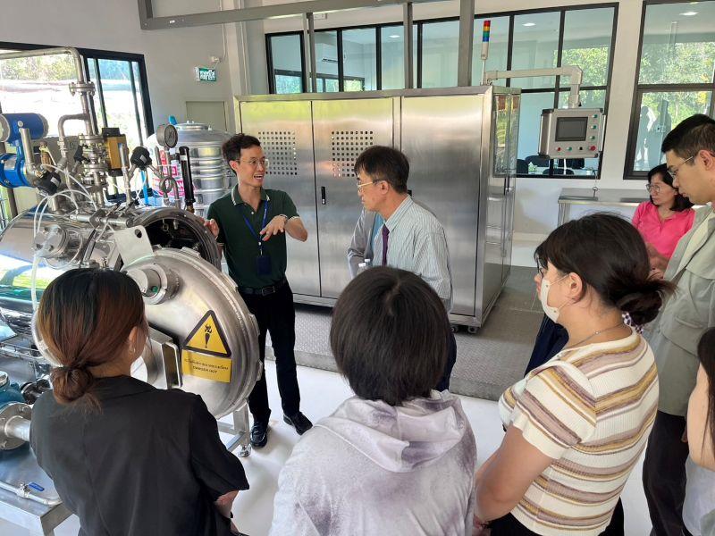 瑪希敦大學為泰國頂尖學府之一,其北碧分校(MUKA)位於環境優美、生態豐富的北碧府,校園宛如一座大型自然森林公園,致力於融合綠色環境與科研創新。該校設有七個學士學程與兩個碩士學位課程,涵蓋食品科技、保育生物學、永續發展、環境工程及農業科學等領域,為泰國新興學術重鎮之一。嘉大食品科學系呂英震主任表示,MUKA的研究與教學設施相當完善,校內不僅擁有地方政府與企業共同捐建的食品加工廠,近期更興建大型食品製程研發中心,將成為在地產業創新與技術開發的重要基地。