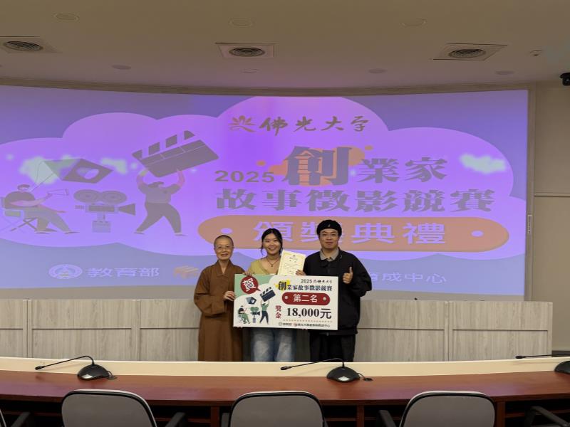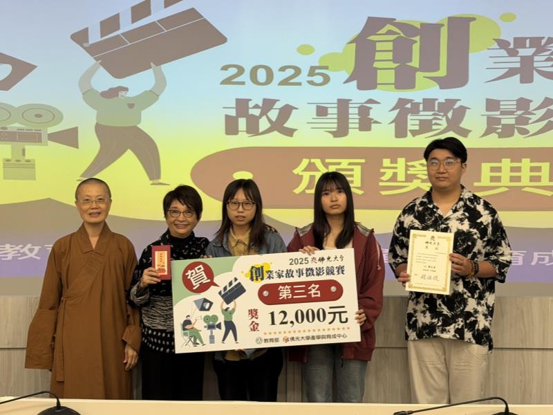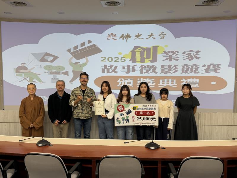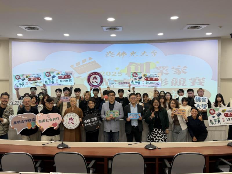 佛光大學為培育學生的創業思維與影像敘事能力,於10月27日舉辦2025《創業家故事徵影》競賽頒獎典禮,活動由研發處產學與育成中心主辦,邀請佛光大學李坤崇副校長、校內師長、企業代表及獲獎學生共同參與,場面隆重熱烈,展現校園充滿創意與活力的氛圍。
