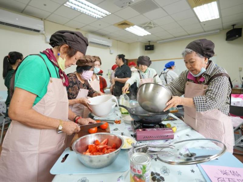 活動中,長者們分組討論食材特性與營養搭配,並以「為我的料理命名」及「我與這道菜的故事」分享成果。長青園鍾佳容主任表示,此次課程不僅是一場烹飪體驗,更透過「看、摸、挑、煮、吃、說」六個步驟,讓長者全程參與食物旅程,促進營養攝取與社交互動,進而提升生活品質與幸福感。