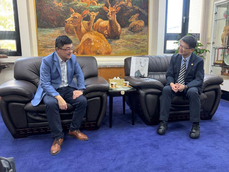 嘉義大學賡續推動校務國際化,致力於拓展全球連結與跨域合作。11月3日外交部雲嘉南辦事處曾榮傑處長蒞校拜會林翰謙校長,雙方就國際交流、學生海外研習及產學合作等議題進行熱烈且深入的討論,共同期許未來能攜手推動多元面向的合作計畫,開創國際教育與產學發展的新篇章。