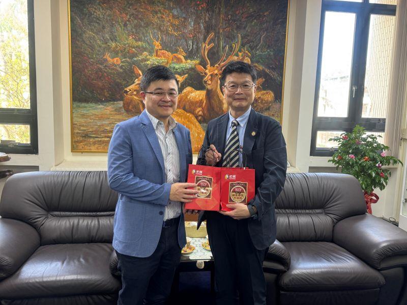 圖4:林翰謙校長致贈嘉大特色產品鮮奶方瑰酥。