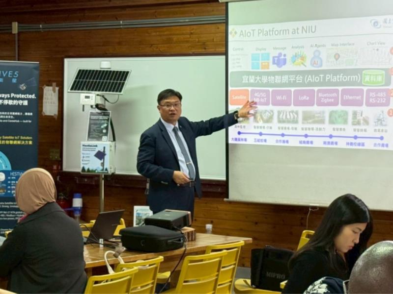 資訊工程學系陳懷恩特聘教授兼教務長介紹宜大的AIoT平台,並分享其在智慧農業與林業監測領域的應用成果。