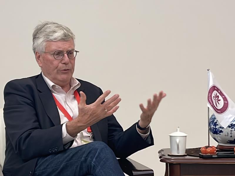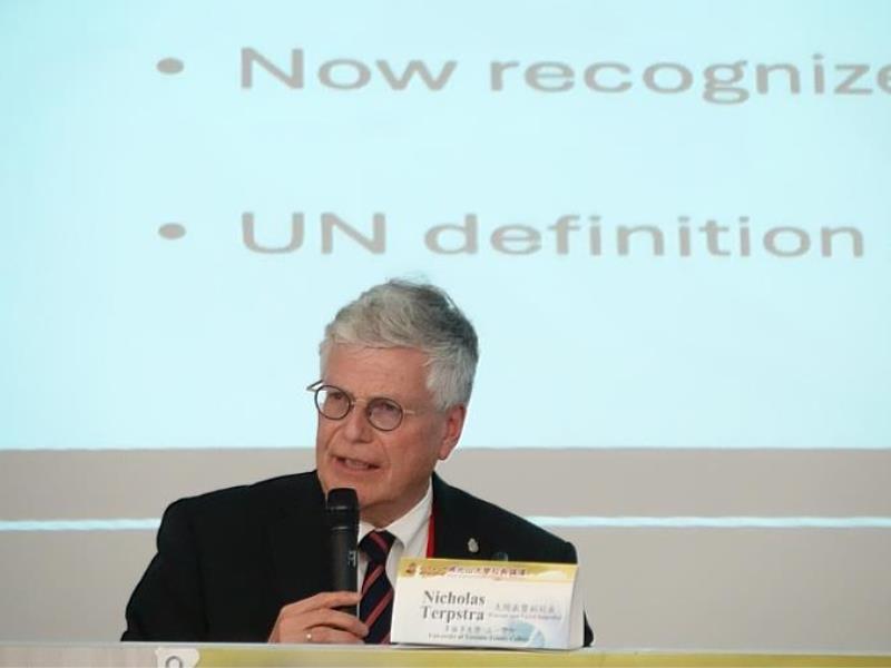 在談到自身的學術背景時,Nicholas Terpstra分享他專長於歐洲早期現代史,研究歐洲與亞洲交流的起點,包括貿易、宗教與文化互動。他提到,歐洲人剛開始來到亞洲,雖帶有殖民色彩與剝削問題,但同時也促進文化與知識的相互啟發與共享。歷史告訴我們,學習與交流能開拓視野、擴大理解,而這正是今日全球教育應該延續的精神。