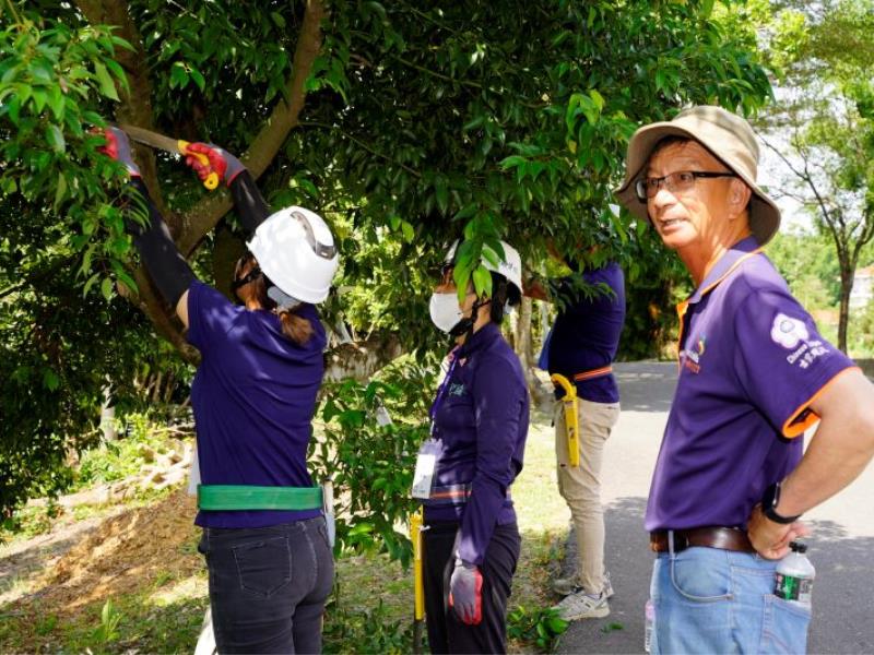 認證課程以「安全作業」、「自然修剪」與「實地演練」為三大核心內容。透過職業安全衛生與高空作業防護觀念的建立,讓學員了解修剪前的風險評估與作業規範;再以自然式修剪原則,引導學員思考如何兼顧維護公共安全與樹木健康;最後透過戶外實作,實際辨識修剪枝條與應用正確的修剪手法,培養兼具技術與判斷力的城市綠化專業人才。課程結束後並進行學科與術科考試,由專業監評團隊指導與審查,確保學員能熟悉修剪流程並具備安全操作能力。整體培訓結合理論、實務與證照制度,不僅強化了樹木修剪的專業素養,也為嘉義市的綠地管理建立更穩固的安全與永續基礎。