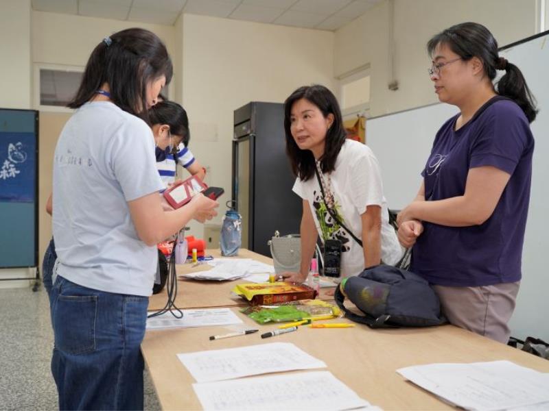 圖6:學員與景觀工程全聯會廖月霞理事討論安全裝備準備時的注意要點。