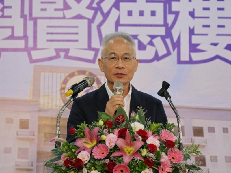 林翰謙校長致詞表示,賢德樓的落成,代表嘉義大學在學生住宿品質與校園環境提升上邁出重要一步。這棟建築凝聚了眾人心力,展現嘉大對學生學習與生活全方位照顧的決心。他特別感謝營造團隊、建築師及嘉大同仁的努力,讓嘉大再添一座兼具美學與功能的新地標。