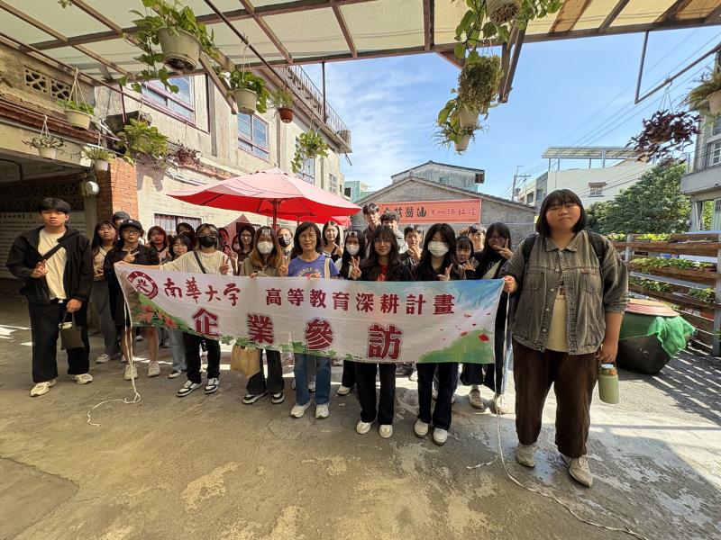 為提升學生對在地產業文化的認識,南華大學產學合作及職涯發展處於10月31日辦理企業參訪活動,由實習及就業輔導組長呂玉枝帶領30位學生至雲林西螺「丸莊醬油」與大埤鄉「良作工場農業文創館」,實地探索傳統產業的創新轉型與文創加值。此行透過導覽體驗、現場互動與業界座談,讓大學生更加深入了解台灣在地醬油文化與農業加工的產業鏈。