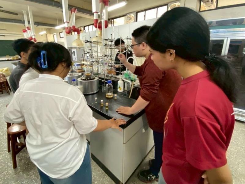 圖3:清邁交換生在木設系何尚哲老師指導下,學習如何提煉木材精油。