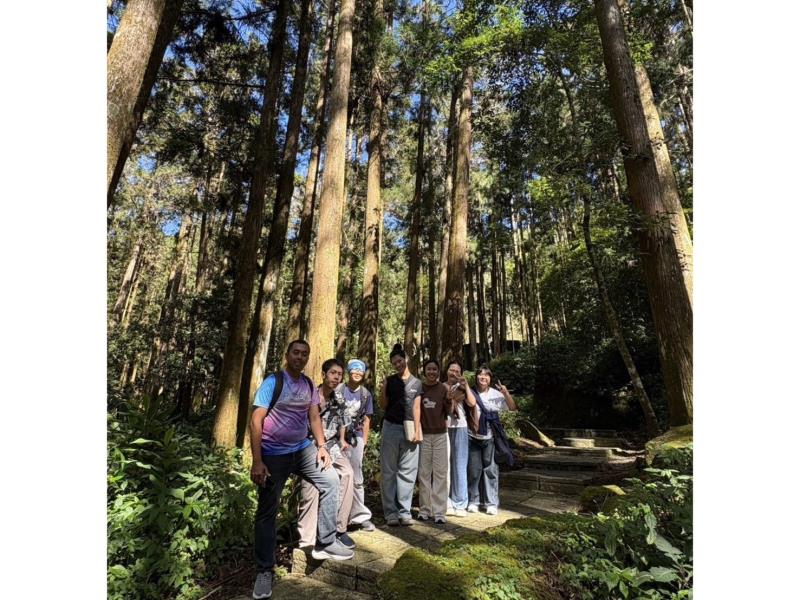 圖6:國際處特別規劃五位清邁交換生與來訪泰國教授一同上阿里山體驗頂湖生態園區的森林步道。