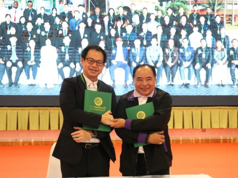 圖1:嘉大楊正誠國際長與泰國湄州大學校長Dr. Weerapon Thongma於農業大學聯盟協議簽署儀式合影。