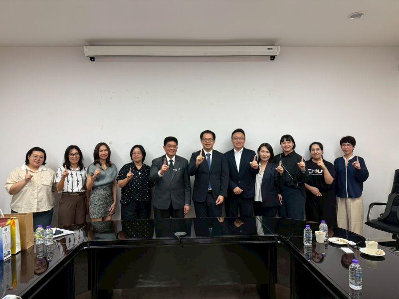 圖4:嘉大訪團與清邁大學校長特助Assoc. Prof. Dr. Noppol Leksawasdi(左5)、研究管理處處長Prof. Dr. Apinpus Rujiwatra合影。