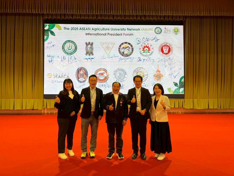 「2025年東協農業大學聯盟國際論壇」(ASEAN Agriculture University Network, AAUN International President Forum 2025)於11月8日至9日在泰國清邁隆重舉行。本次論壇由湄州大學(Maejo University)主辦,嘉義大學應邀派員代表出席,包括國際處楊正誠國際長、農藝學系許育嘉主任、國際處郭玉敏秘書及顏辰?助理,共同參與論壇研討及聯盟合作備忘錄簽署典禮,展現嘉大在國際農業教育與永續發展議題上的積極作為。