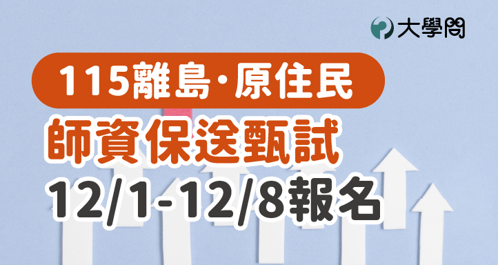 115學年度「離島及原住民師資保送甄試」資格審查於114年12月1日開始報名,不論是離島考生或原住民考生,報名期限皆為12月8日截止,請把握時間於期限前報名。