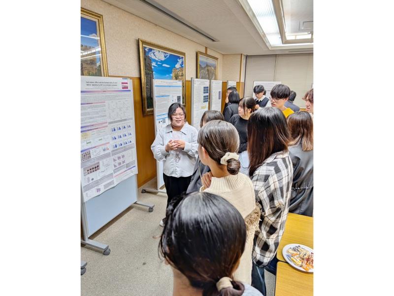 嘉大微藥系碩二吳佩璇研究生、生化系大三江博弈同學亦與多位德島大學同學進行海報展演與交流。在海報展演期間,兩位同學以英語向德島大學師生介紹自己的研究主題,並學習表達自己的想法。雖然用英語準備口頭報告相當辛苦,卻也收穫滿滿。
