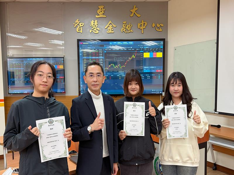 亞大財金系主任林盈利表示,該系長期重視同學證券市場知識與金融實務能力的養成,透過理論課程、投資模擬軟體與證照輔導三者相結合,多年來已在各項財金競賽中屢獲佳績。此次獲獎,不僅是對同學努力的肯定,更彰顯了財金系的教育品質、實作導向課程的強大競爭力。