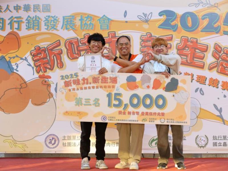 此外,佳作七名分別為國立屏東科技大學、黎明技術學院、國立台東專科學校、明台高中及台北海洋科技大學等隊伍,各頒發獎金3,000元。所有獲獎作品之報告檔案均授權主辦單位作為後續推廣之用,助力國產土雞料理持續發揮影響力。