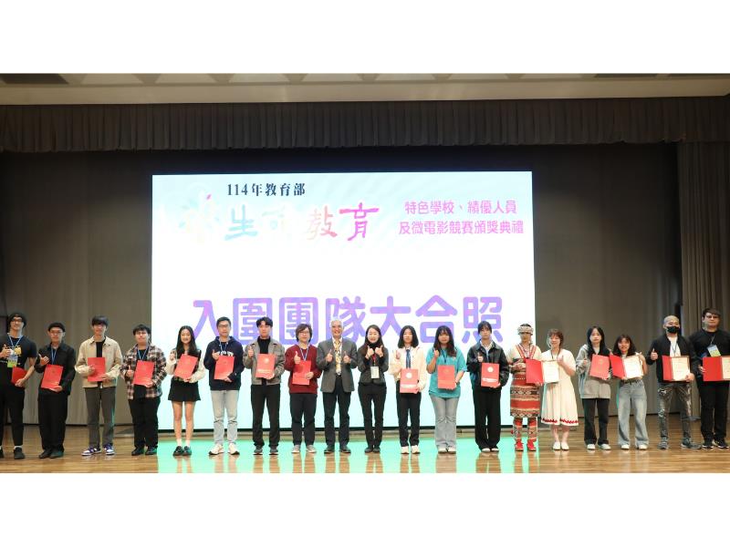 為表揚致力推動生命教育工作表現卓越且具特色之公私立各級學校、績優人員及生命教育微電影獲獎團隊,教育部於12月12日辦理「114年教育部生命教育特色學校、績優人員及微電影競賽頒獎典禮」,藉以肯定結合多元宣導與跨域合作,將生命教育從校園推展至社會各角落的獲獎者。本次分別有9位績優人員及8所特色學校(包括大專校院3所、高級中等學校1所、國中1所及國小3所)獲獎,並於當天揭曉微電影得獎團隊,此次競賽共計33件參賽、16部入圍影片角逐金牌獎座。
