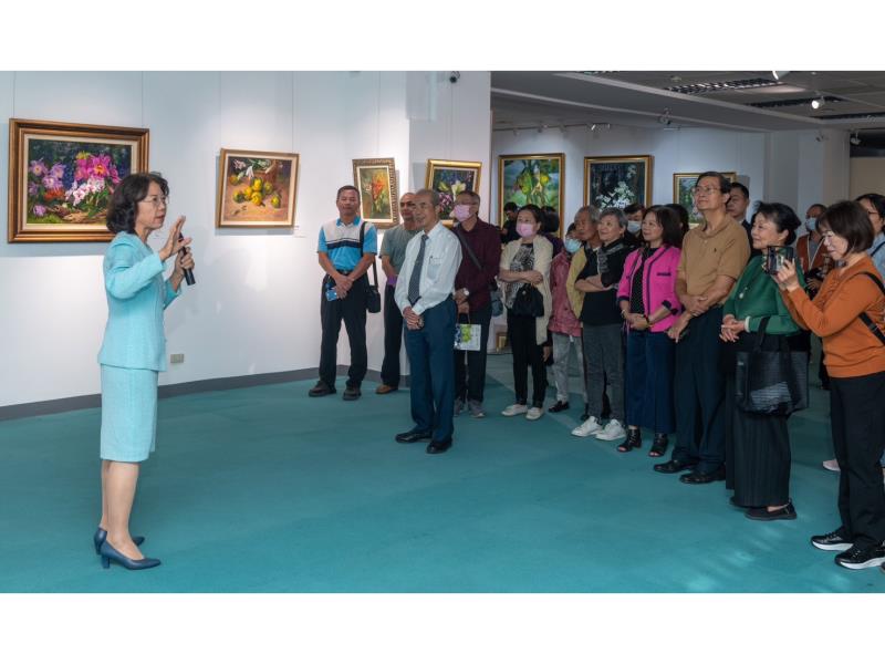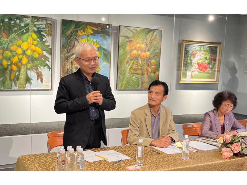 圖2:農業部莊老達司長2023年參加黃美賢桃園畫展開幕座談指出,作品具備走向國際、展現台灣之美的能量。