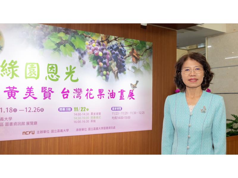 嘉義大學傑出校友、長榮大學黃美賢副教授受邀於嘉大106週年校慶黃金檔期舉辦《綠園恩光──黃美賢台灣花果油畫展》,展覽自11月18日起至12月26日,展出50件作品,精彩畫作描繪台灣各地田園中花果風采,被視為~凝視「水果王國、花卉之島」的一扇窗。