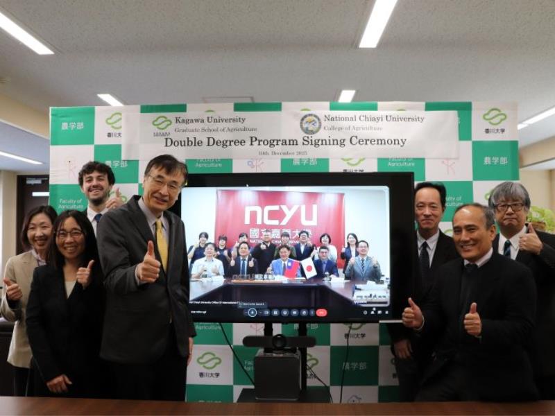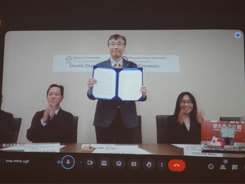 簽約儀式於12月10日透過視訊方式進行,香川大學農學院院長Ogawa Masahiro教授表示,兩校長年交流累積深厚情誼,雙聯學位的啟動是雙邊合作的重要里程碑,不僅將強化學生的跨文化能力,也將提升其國際移動力與專業競爭力。他期盼雙方未來能持續攜手推進更多高教國際化合作。