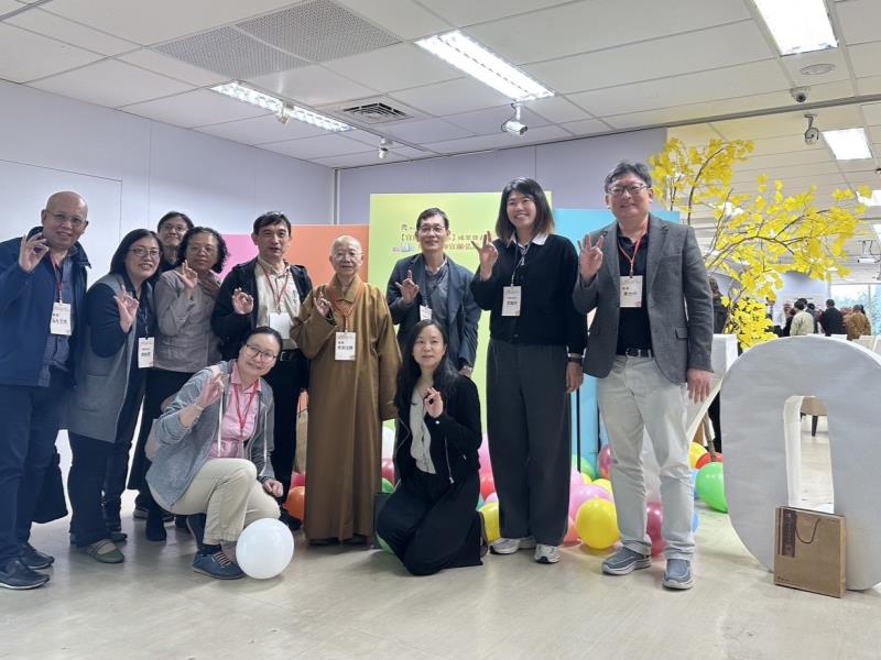活動最後,與會貴賓欣賞田調課程與歷屆寺志工作坊成果回顧影片,並於圖書館中庭星雲大師銅像前合影留念,隨後進行茶敘與自由觀展。