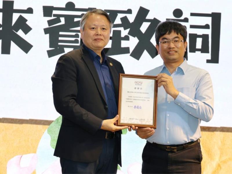 圖5:嘉大陳瑞祥副校長頒贈感謝狀予三光米股份有限公司林肇榮董事長(右)。
