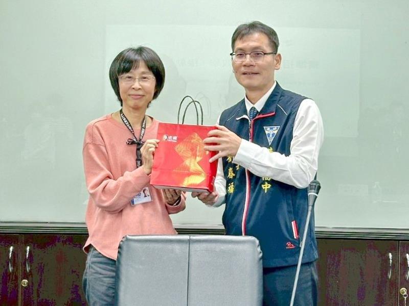 圖2:嘉義大學鄭青青教務長致歡迎詞並致贈紀念品。