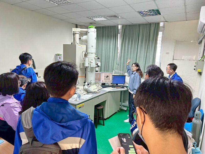 港明高中團隊在嘉大安排下,參訪理工學院應用化學系及土木與水資源工程學系實驗室。歷時30分鐘的導覽中,首先在應化系王梓帆主任陪同下,由蔡尚庭助理教授實驗室介紹質譜儀、電子顯微鏡等實驗設備與學生培育特色,讓港明高中教師對化學材料、環境檢測與應用科學等專業領域有更深刻的理解:參訪成員表示,此行大幅提升對大學端科學研究環境的掌握,對規劃高中科學教學具有實質助益。接續前往土木與水資源工程學系水工與材料試驗場進行參訪,由林庚達助理教授介紹水工模型試驗、材料測試流程及工程應用案例:此段參訪讓港明高中教師能直觀感受工程領域的實務面向,有助於引導學生認識工程職涯及科系特色。