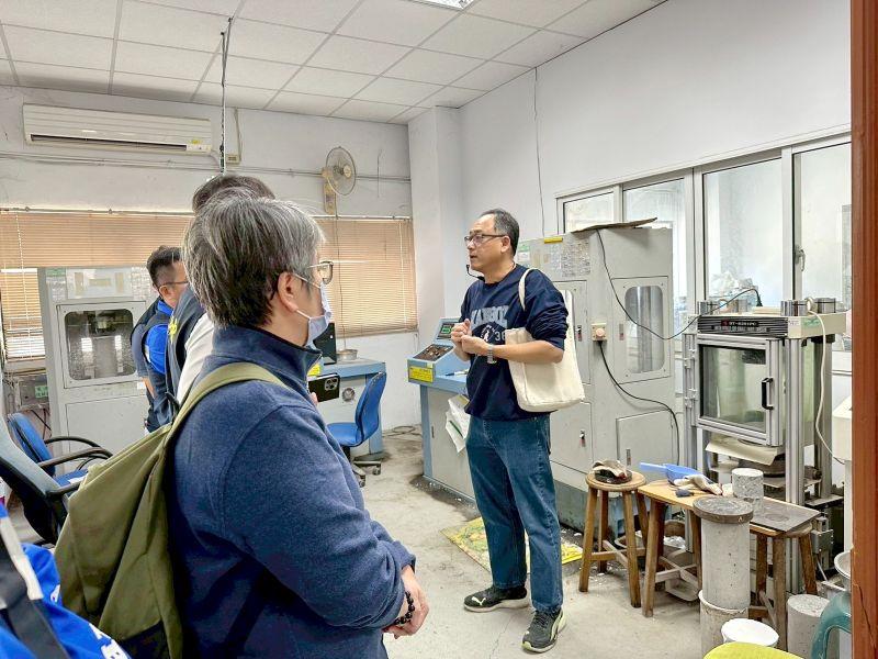 圖6:土木與水資源工程學系林庚達助理教授介紹土木材料試驗場。