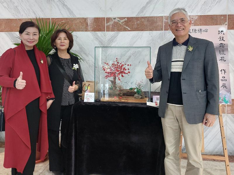 洪銀霜近年來積極投入社區教學與展覽,她分享說,很感激南華樂齡大學課堂的啟發,讓她從對纏花藝術的熱愛中,開啟無限的設計靈感與潛力,並有機會策展分享。很感動校長與師長們特別百忙之中親臨觀展。洪銀霜更提到,作品裡每一絲線的纏繞都是一種修行,透過這種細膩的指尖藝術,可以找回初心、回歸寧靜,未來期盼能將纏花藝術創作之美分享給更多人。洪銀霜的作品未來也會在南華大學藝文中心展覽廳展出,也歡迎大眾蒞臨欣賞。