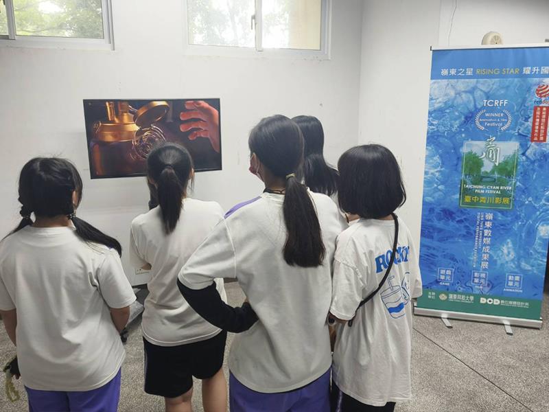 嶺東數媒特別於竹山高中校園展覽空間,精選歷屆於「臺中青川影展」中表現亮眼、並曾於台中市政府「中山73影視藝文空間」及「沙鹿深波電影圖書館」展出的影視、動畫與遊戲設計作品進行巡迴展映。展出內容涵蓋青春成長、奇幻敘事及社會議題等多元主題,呈現成熟的影視語言與動畫技法,讓高中生近距離感受大學階段創作的深度與專業,現場反應熱烈,成功激發學生對數位內容影像創作與未來學習方向的高度興趣。