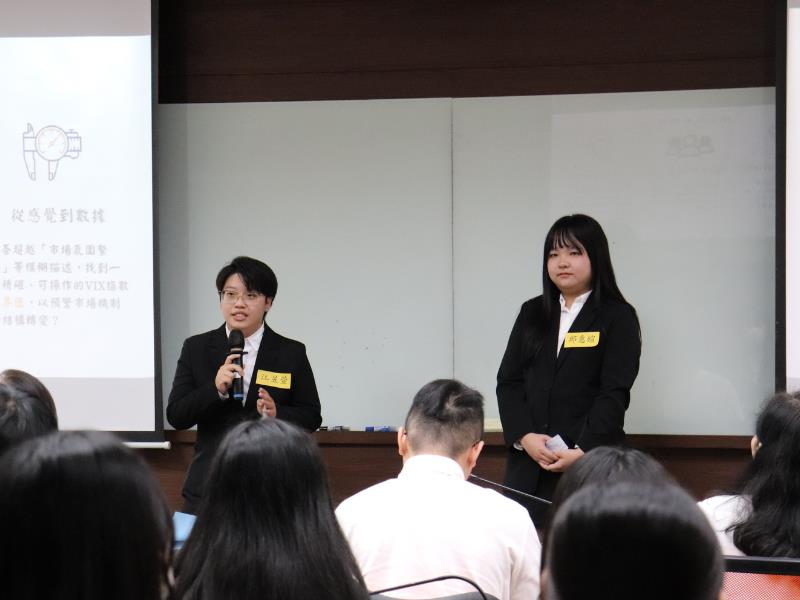 在眾多優秀作品中,第一名由袁淑芳老師指導的「恐慌指數的結構特性與外溢效果」脫穎而出。該研究聚焦金融市場關鍵指標─恐慌指數(VIX),透過嚴謹的實證分析,探討市場情緒如何影響不同市場間的風險傳遞。研究成果顯示,恐慌指數具備高度前瞻性,對投資風險控管與市場監理具有重要參考價值,展現學生紮實的金融分析能力與研究深度。