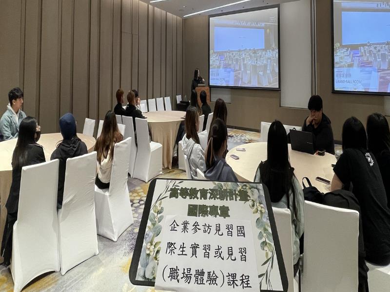 南華大學辦國際生職場見習,參訪高雄萬豪酒店,聆聽企業介紹,認識飯店產業。