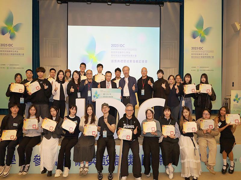 教育部「114年度鼓勵學生參加藝術與設計類國際競賽計畫」(IDC)邁入第20年,亞洲大學再度寫下輝煌紀錄!共計有64人次學生、36件作品得到國際競賽大獎,獲教育部頒發110萬元獎勵金,勇奪教育部國際設計競賽全台第一,更第二度榮登全國總冠軍,展現強大的國際設計競爭力。