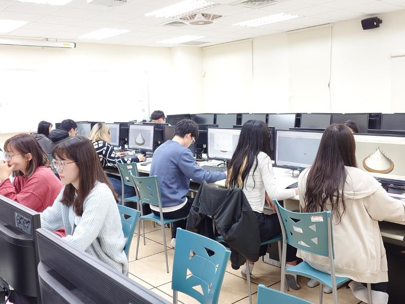 南華大學產設系推動國際證照輔導,開設「TQC 商品造型設計認證班」學生專注聽講。