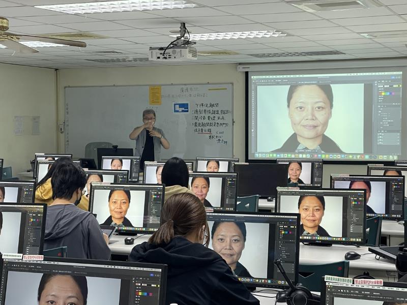 南華大學產設系推動國際證照輔導,開設「SSE Adobe Photoshop CC 國際證照輔導班」,學生專注聽講。
