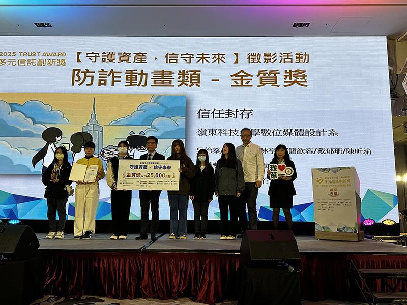 本次徵影活動以「防詐」與「信託」為核心主題,鼓勵學生透過影像與動畫形式,將抽象議題轉化為具故事性與社會意義的視覺作品。嶺東數媒學生在課程與專題實作的基礎上,整合影像敘事、動畫表現與新媒體技術,完成多件兼具創意深度與視覺完成度的作品,成功與全國影視、動畫相關科系學生同台競技,也展現年輕創作者對公共議題的觀察與詮釋能力。