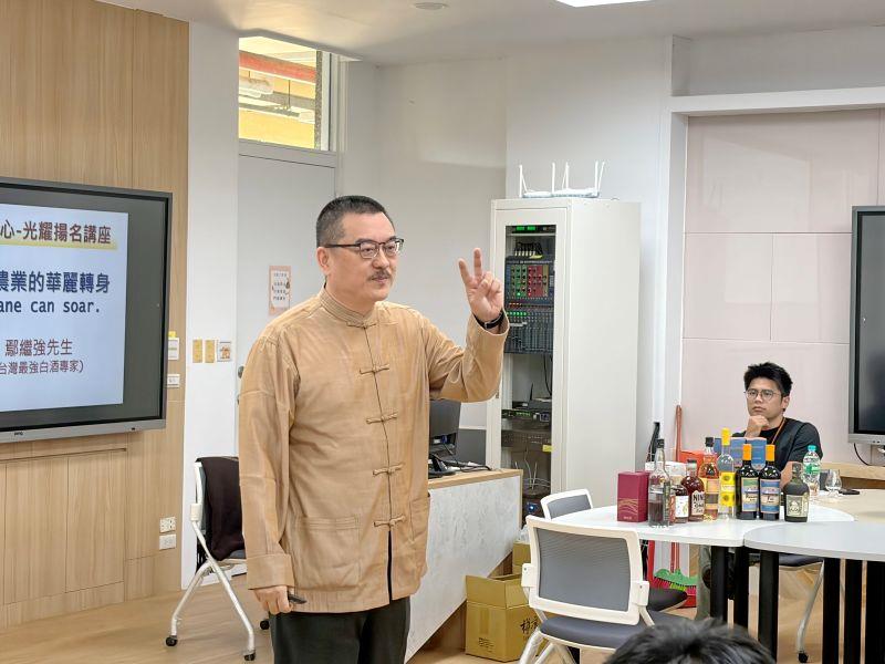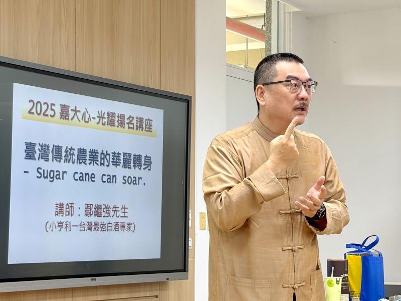 嘉義大學為深化在地連結並落實大學社會責任,12月29日舉辦「嘉大心-光耀揚名講座」,邀請烈酒專家鄢繼強(小亨利)先生蒞校開講。講座以「臺灣傳統農業的華麗轉身」為題,除品飲臺灣特色蘭姆酒產品外,更探討如何將農業原料發展為具備國際潛力的蘭姆酒產業,吸引眾多師生與各界人士參與。