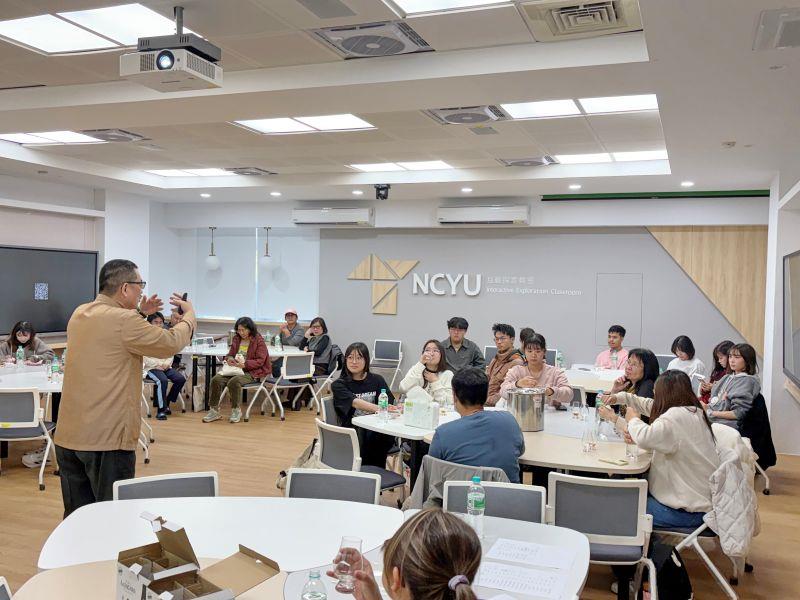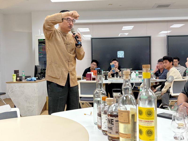 嘉義自清代至日治時期便是臺灣重要的蔗糖產區,至今在製糖與生食甘蔗產量上仍名列前茅,累積了深厚的產業底蘊。講座中,鄢繼強老師引領師生品飲知名蘭姆酒品,亦深入剖析臺灣發展蘭姆酒的風土優勢,強調若能整合農業技術與生物科技,可將這片土地的恩賜精煉成高附加價值的「液體黃金」,為臺灣傳統農業開創全新格局。